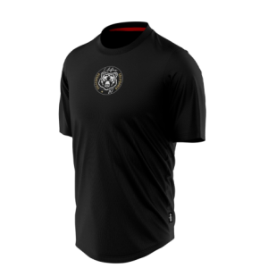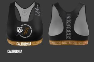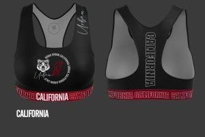 Top deportivo negro "California Urban" con diseño moderno, gráfico de oso y banda inferior. Ideal para entrenamientos y casual.