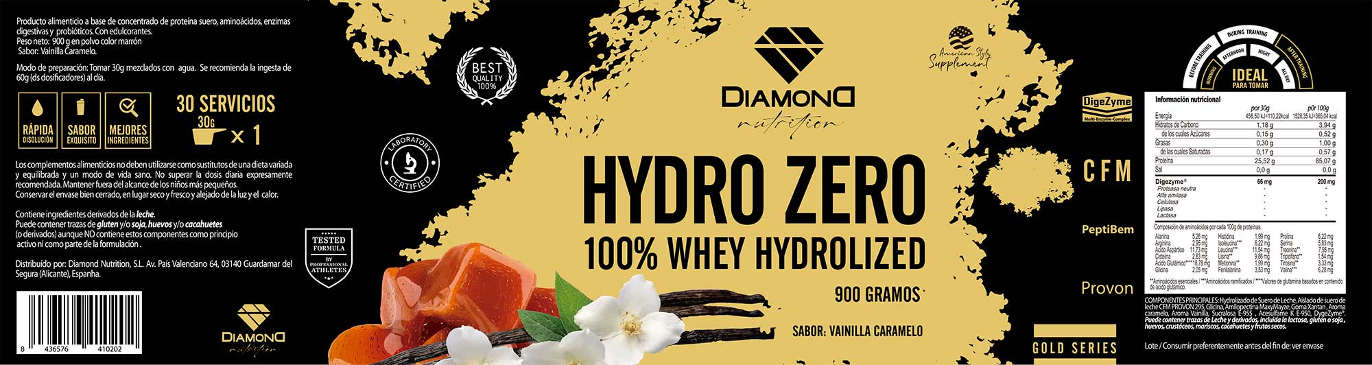 HYDRO ZERO Gold Series está compuesto por el más puro suero de leche, micro filtrado por flujo cruzado, con CERO azúcar adicional. Hydro Zero, como todos los productos Diamond Nutrition, está compuesto por ingredientes 100% seguros y cuidadosamente seleccionados.