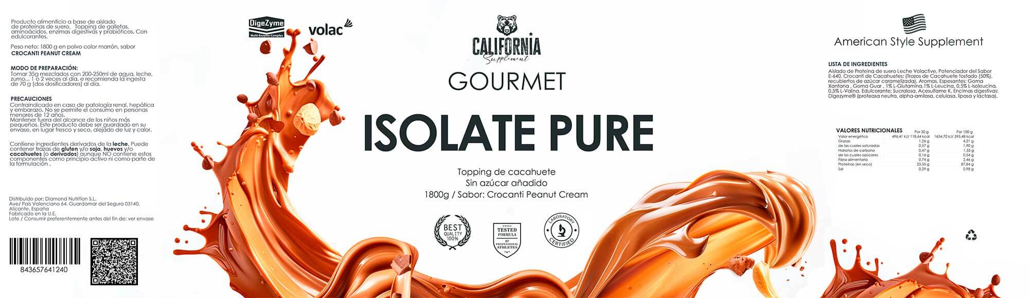 Isolate Gourmet Topping Crocanti Peanut Cream es un suplemento proteico en polvo ideal para aumentar masa muscular y mejorar la recuperación post-entrenamiento. Contiene proteínas de suero, aminoácidos esenciales y enzimas digestivas. Sin aspartamo, es perfecto para deportistas y personas activas.