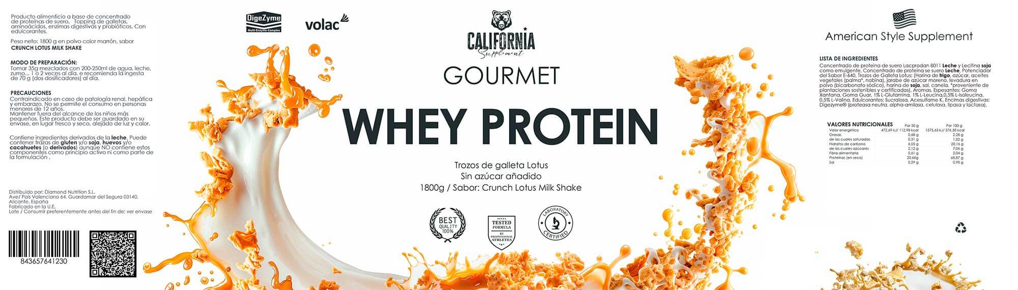 Descubre el sabor y la nutrición en cada sorbo con nuestro Whey Gourmet Topping Crunch Lotus Milk Shake de la marca California. Este batido en polvo está diseñado para aquellos que buscan una experiencia de sabor única mientras cuidan su ingesta proteica diaria. Perfecto para deportistas, entusiastas del fitness y cualquier persona que desee un complemento alimenticio delicioso y nutritivo.